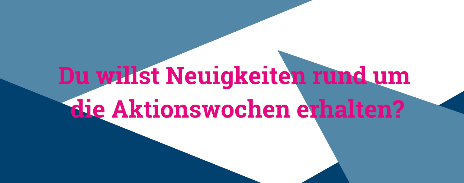 Wir laden zivilgesellschaftliche Initiativen herzlich ein, mit eigenen Veranstaltungen an den Aktionswochen teilzunehmen. Wenn ihr mit dabei sein möchtet, findet ihr hier alle Infos zum Mitmachen. Wir freuen uns auf euch und vielfältige Kooperationen!