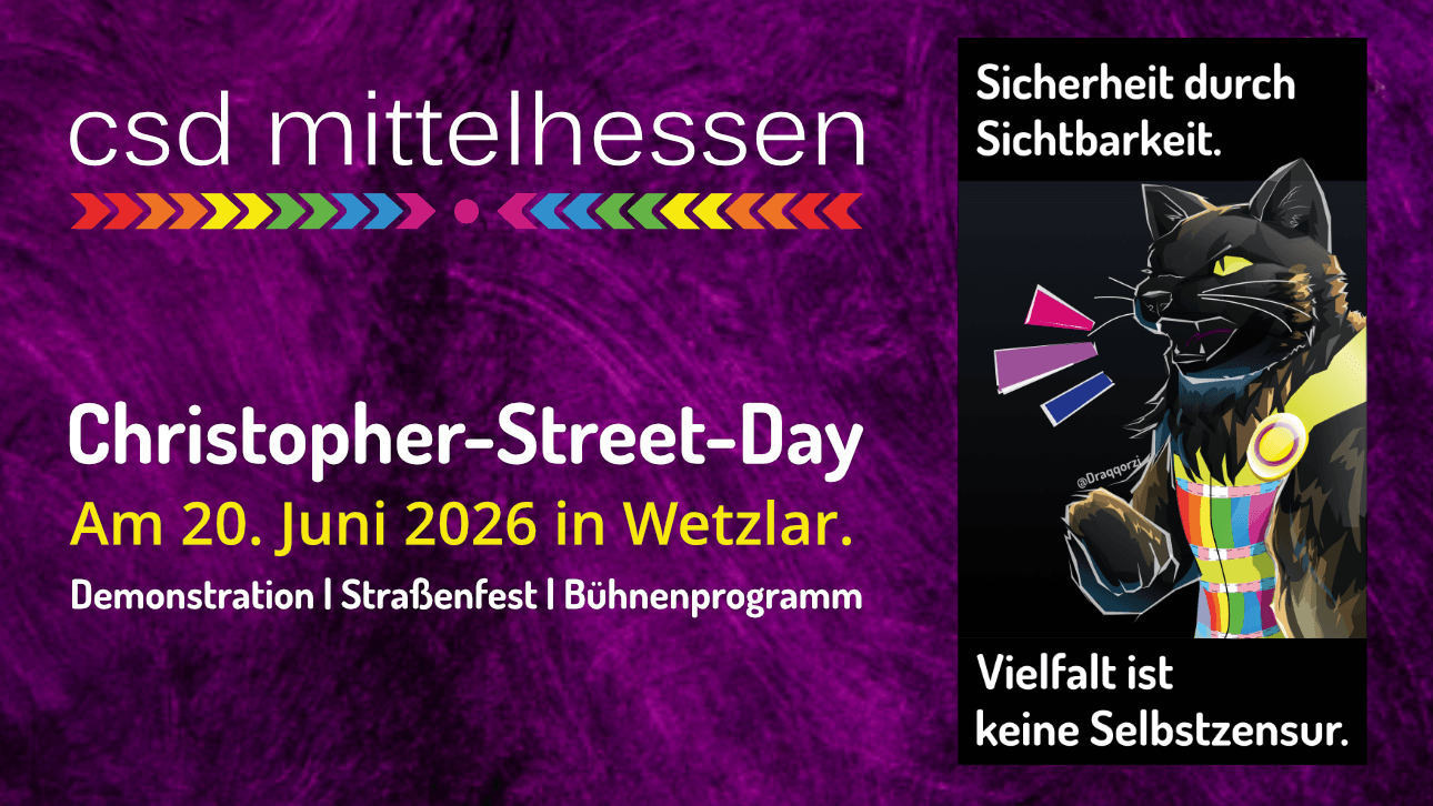 Am 20. Juni 2026 findet in Wetzlar der CSD Mittelhessen statt. Unter dem Leitgedanken „Sichtbarkeit durch Sicherheit“ setzt die Veranstaltung in diesem Jahr ein klares Zeichen für eine offene, vielfältige und geschützte Gesellschaft.