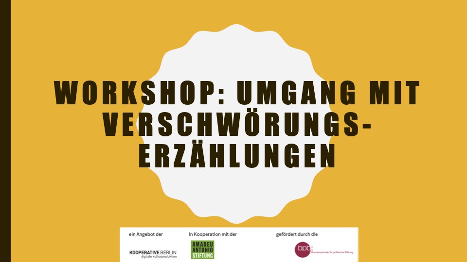 Der Workshop für Jugendliche und junge Erwachsene setzt am Alltagsverständnis und Gebrauch des Begriff “Verschwörungstheorien” an und vermittelt ein Basisverständnis zum Thema.